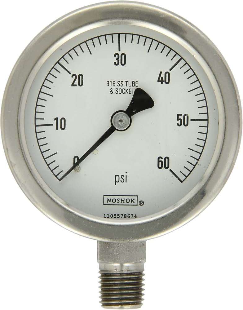 Description:Β 4″ NOSHOK 0-300 PSI GAUGE, 1/2″ NPT, BOTTOM MOUNT